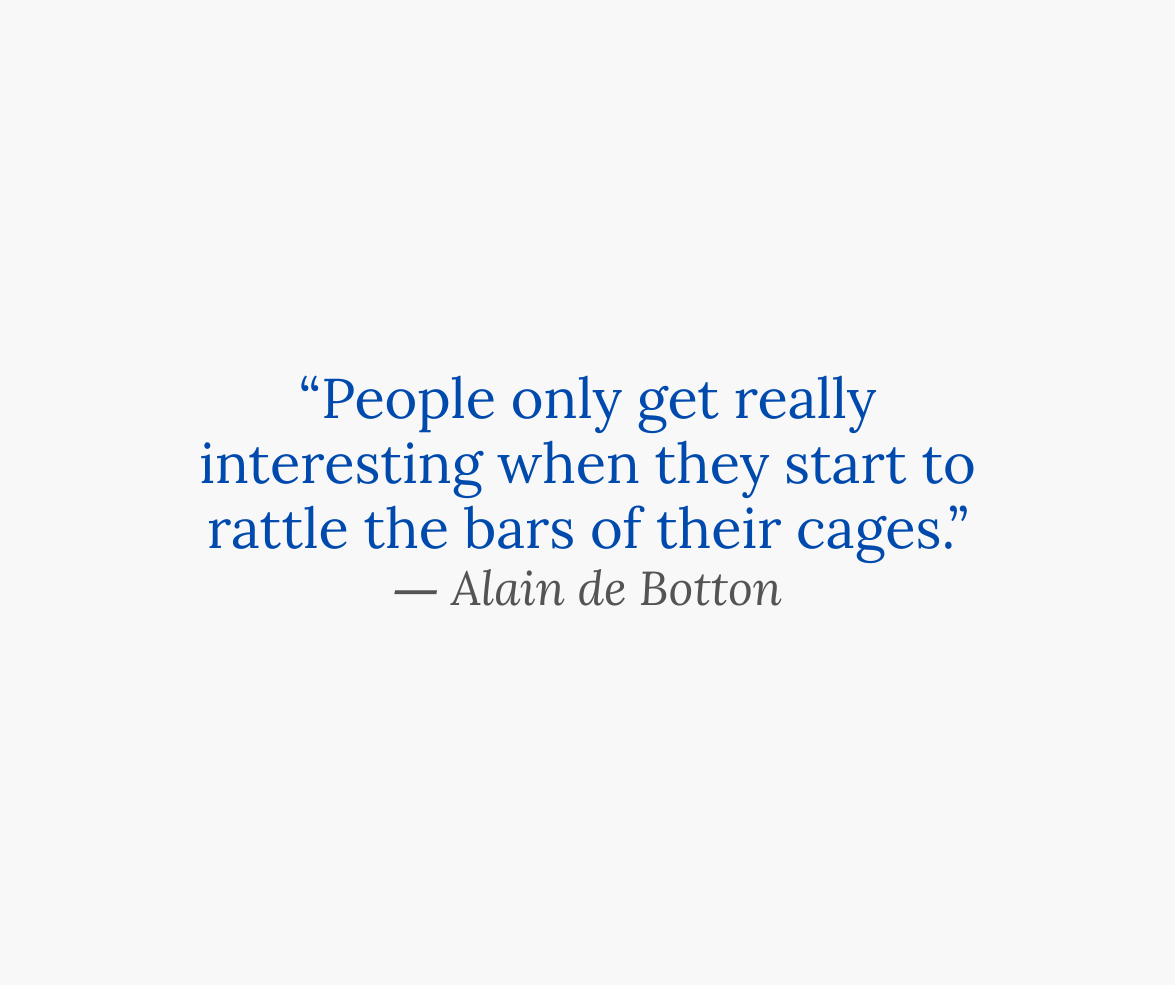 “People only get really interesting when they start to rattle the bars of their cages.”