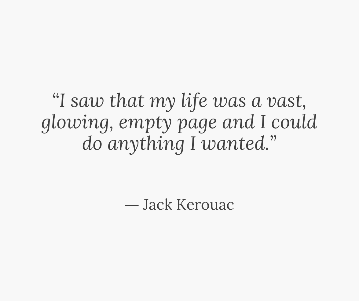 “I saw that my life was a vast, glowing, empty page and I could do anything I wanted.” ― Jack Kerouac