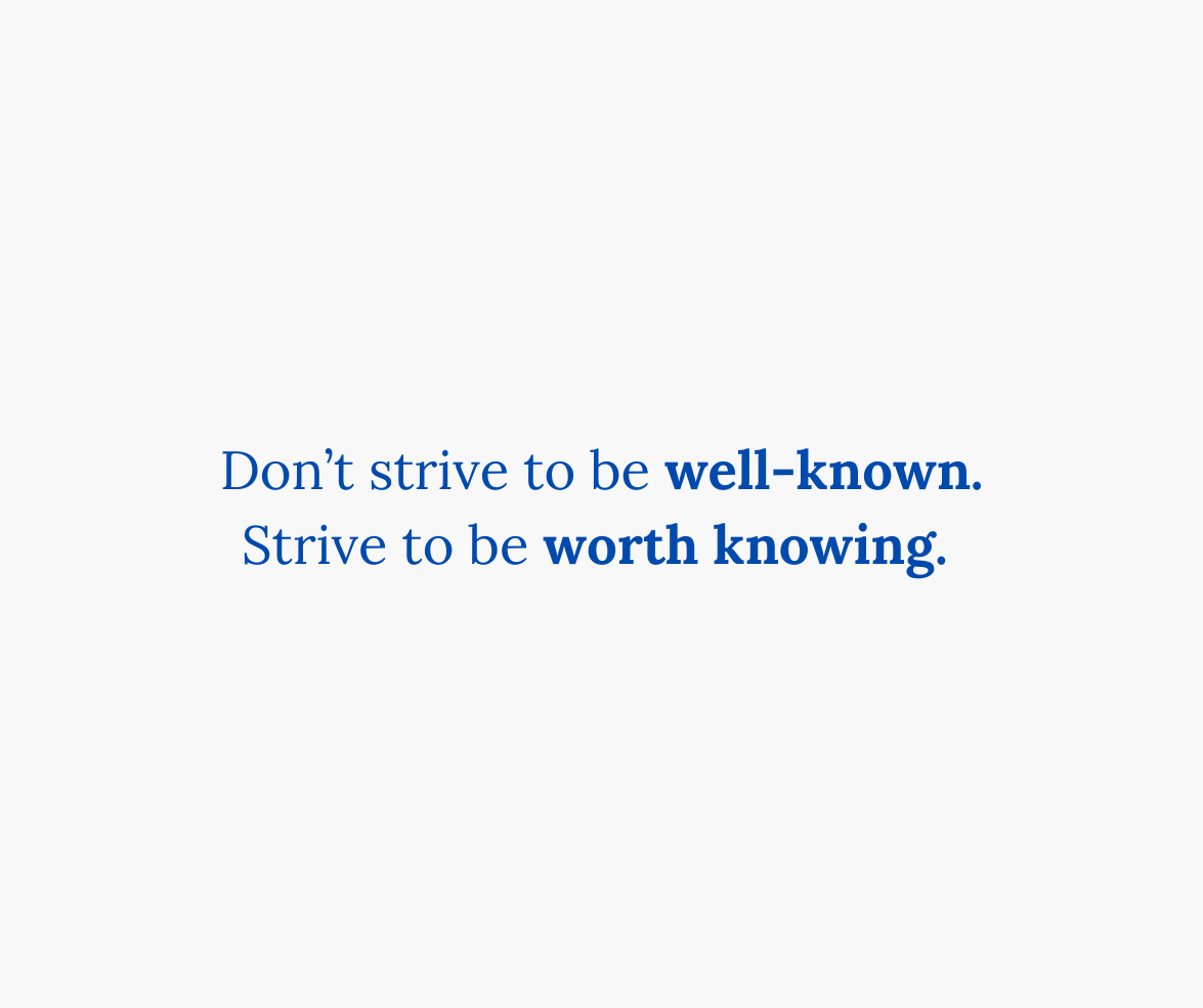 Don’t strive to be well-known. Strive to be worth knowing.