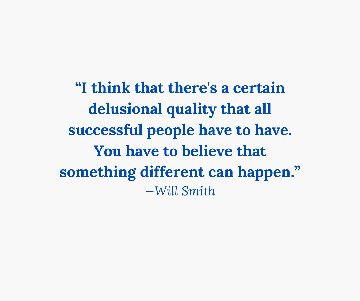 “I think that there's a certain delusional quality that all successful people have to have. You have to believe that something different can happen.”—Will Smith