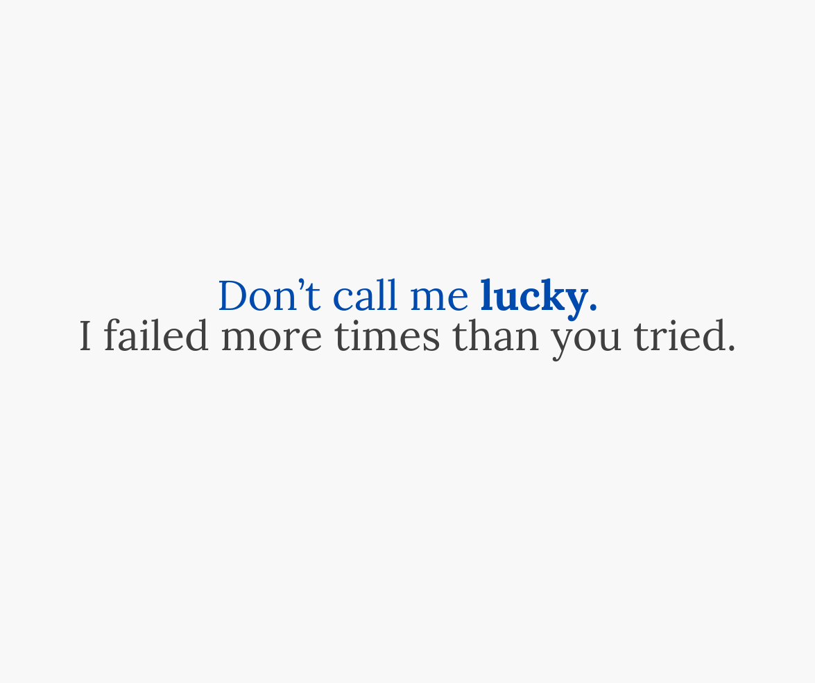 Don't call me lucky. I failed more times than you tried.