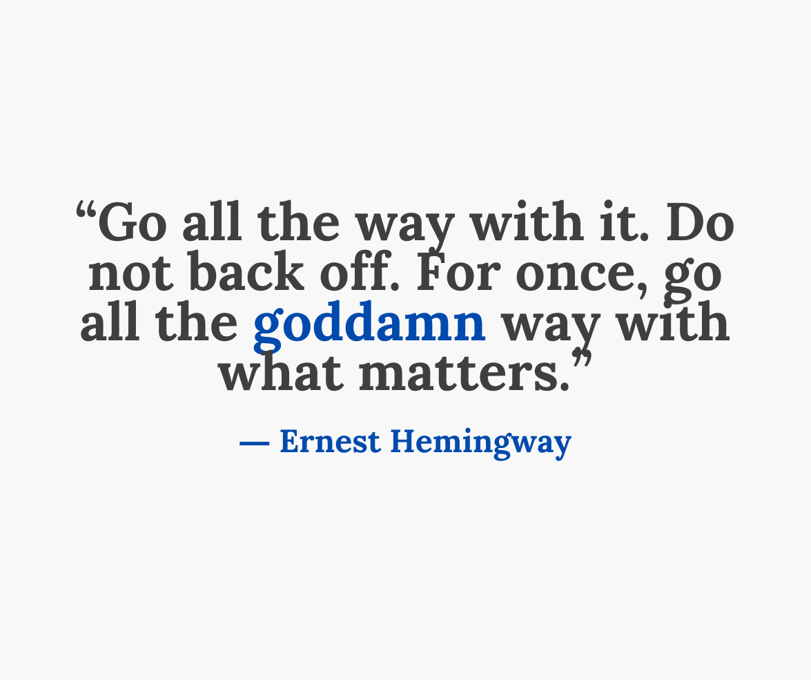 “Go all the way with it. Do not back off. For once, go all the goddamn way with what matters.”